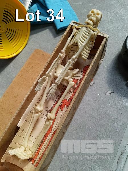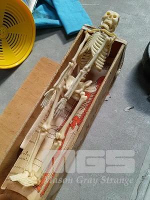 SMALL ANATOMICAL HUMAN SKELETON TRAINING AID WITH DIAGRAMS AND CASKET