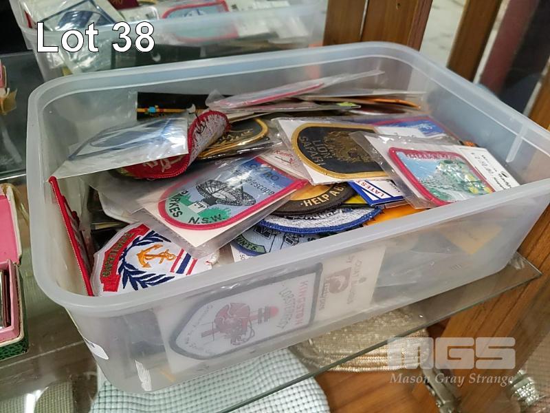 QUANTITY OF EMBROIDERED SOUVENIR BADGES, NATIONAL AND INTERNATIONAL ESTIMATED 100 ITEMS PLUS.