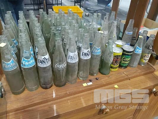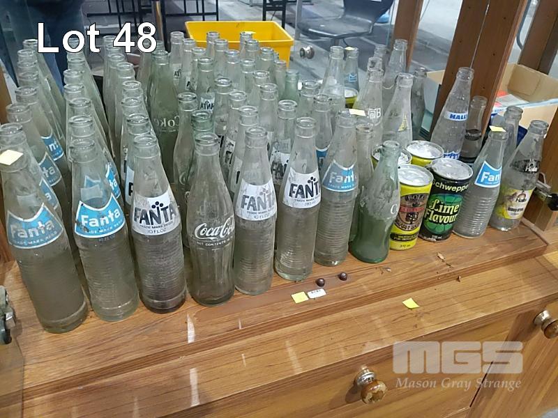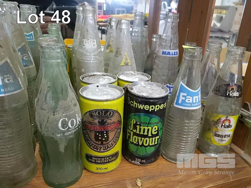 CLASSIC VINTAGE SOFT DRINK BOTTLES AND CANS. FANTA, COKE, HALLS, ORIGINAL SOLO CANS AND MORE (40 ITEMS)