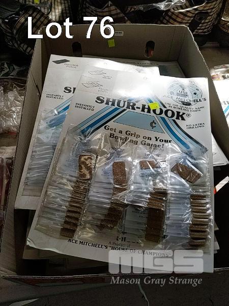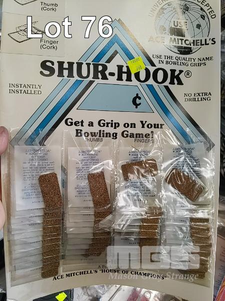 QUANTITY OF CORK AND NYLON TEN-PIN BOWLING "SHUR-HOOK" THUMB AND FINGER GRIPS MOUNTED ON COUNTER DISPLAY, APPROX 30 DISPLAYS, ESTIMATED 40 ITEMS PER DISPLAY
