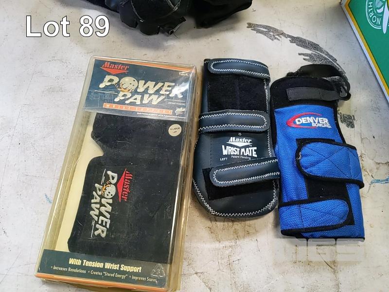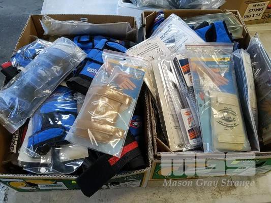 COLLECTION OF NEW TEN-PIN BOWLING ACCESSORIES INCLUDING "STRIKE-GRIP" ULTIMATE HAND & FINGER EXERCISER, PROGRIP BOWLING GLOVES DENVER WRIST & PALM SUPPORTS, GLADIATOR LOWER ARM SUPPORTS, MASTER "POWER PAW" WRIST SUPPORTS, MASTER "WRIST MATE" WRIST SUPPORTS AND MUCH MORE (2 x BOXES - 100 ITEMS APPROX) NO GST