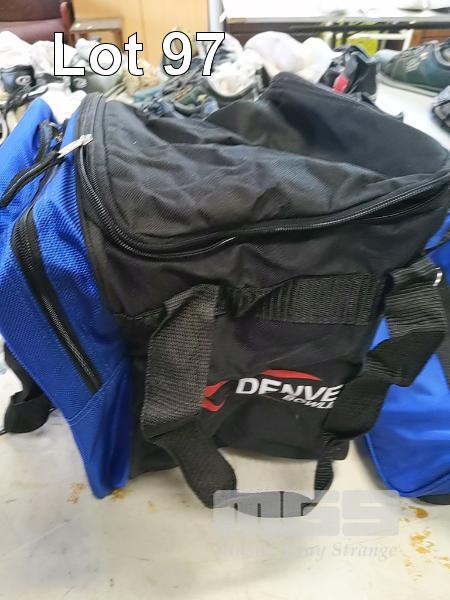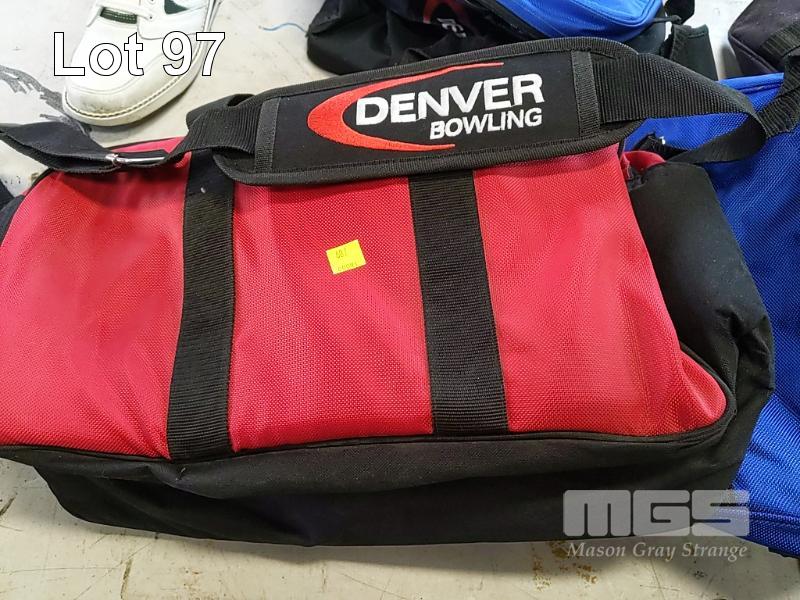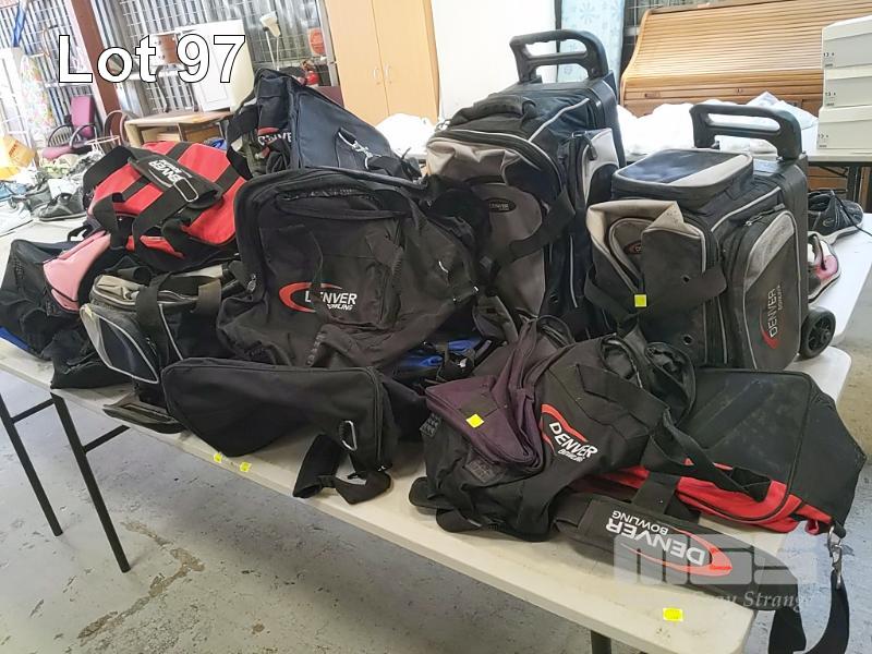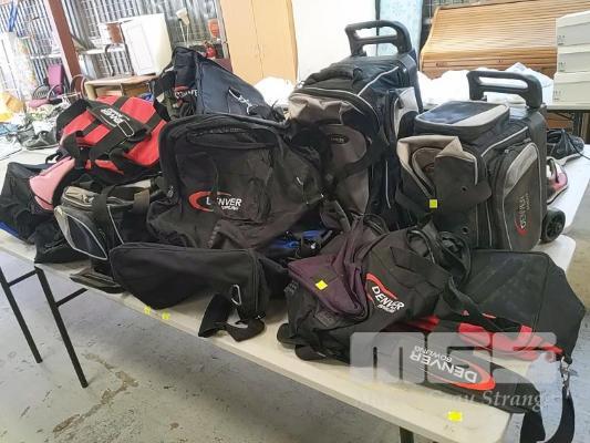 ASSORTED "DENVER BOWLING" TEN-PIN BOWLING BALL/BOWLING KIT BAGS INCLUDING TOTE BAGS, ROLLER BAGS, SINGLE BALL, MULTI-BALL AND MORE. INCLUDES NEW AND USED BAGS. (1 x TABLE - 20 ITEMS APPROX)