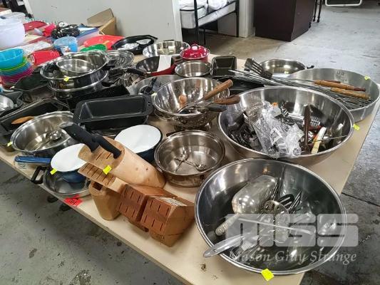 ASSORTED UTENSILS, FLATWARE, KNIVES, COOKWARE & BAKING-WARE (1 x TABLE)