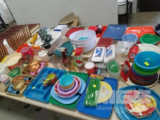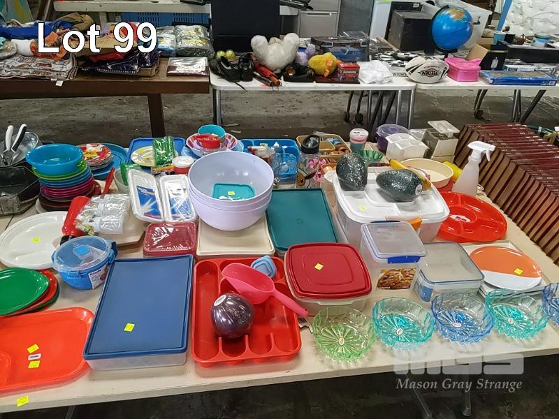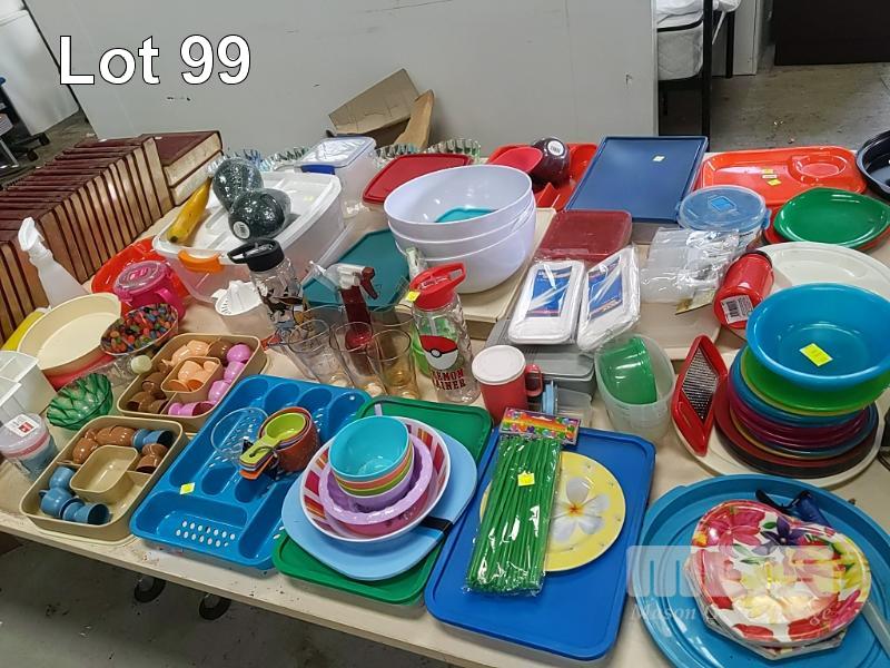 COLLECTION OF PLASTIC-WARE INCLUDING TUPPERWARE, DECOR AND MORE (1 x TABLE)