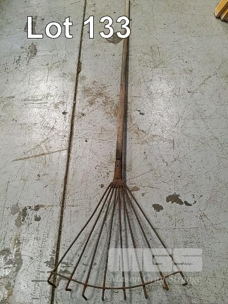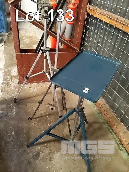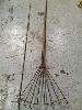 3 x TRIPOD STANDS COMPRISING PROJECTOR STAND, EASEL AND CAMERA STAND. OLD CRAB RAKE.