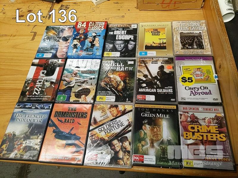 COLLECTION OF MOVIE DVDS INCLUDING WAR COMMA DRAMA, DOCUMENTARIES, AUSTRALIAN TV AND MUCH MUCH MORE ESTIMATED 70 ITEMS
