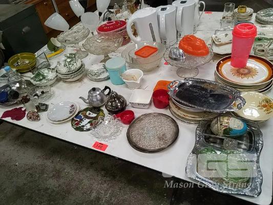 CROCKERY, GLASS BOWELS, EPNS ETC (1 x TABLE)