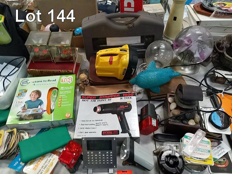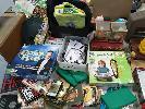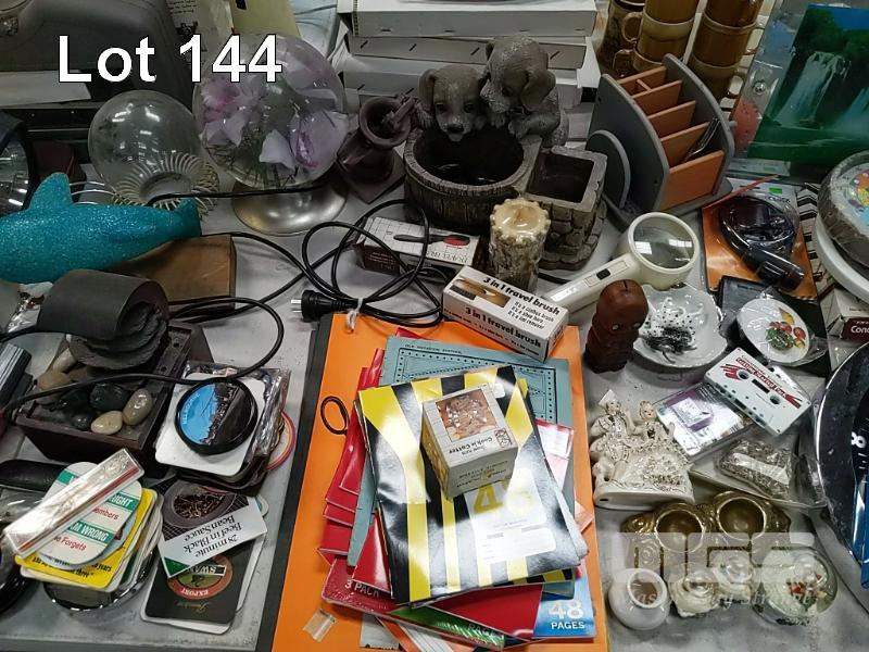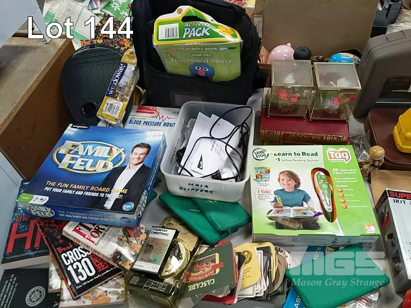 ASSORTED HOMEWARES, GAMES, TOOLS, NOTE PADS, CLOCKS TELESCOPE AND OTHER NOVEL ITEMS (1 x TABLE)