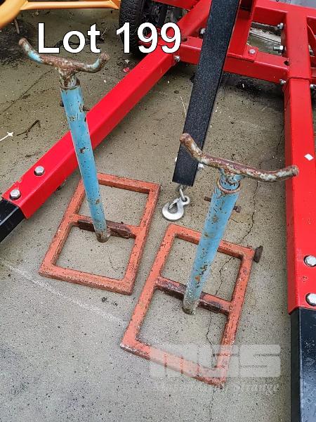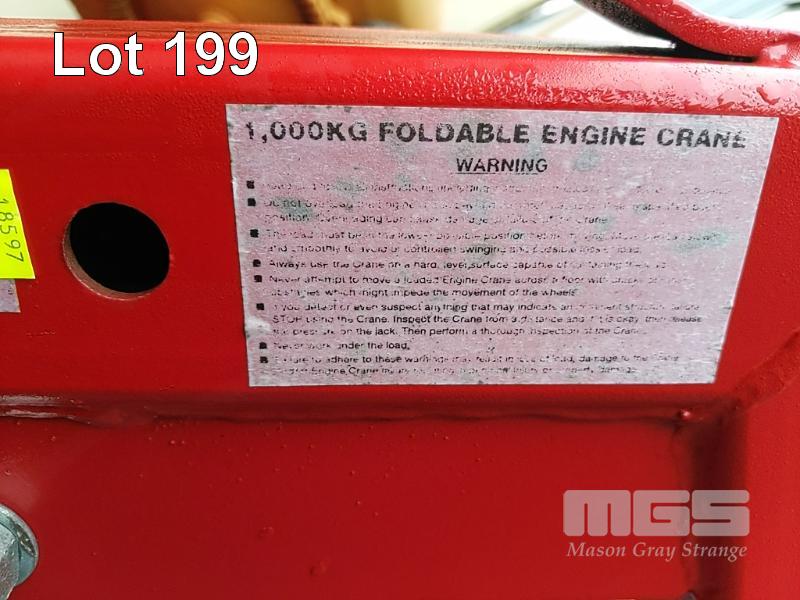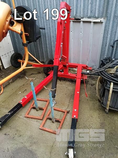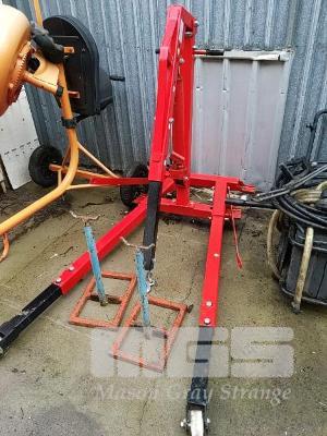 WORKSHOP ENGINE HOIST, 1,000 KG SWL, MANUAL HYDRAULIC RAM & 2 x FABRICATED WORKSHOP STANDS