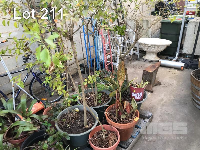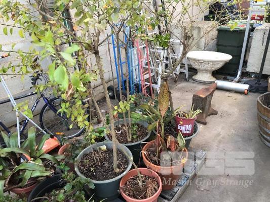PALLET OF ASSORTED POTTED PLANTS 7 x PLASTIC, 1 x TERRACOTTA, 1 x GLAZED CERAMIC