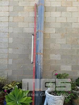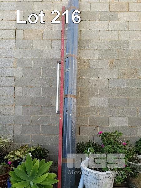 CONCRETE SCREED AND ROLL OF CORRUGATED POLYCARBONATE ROOFING. BOTH 3.6M LENGTH APPROX.