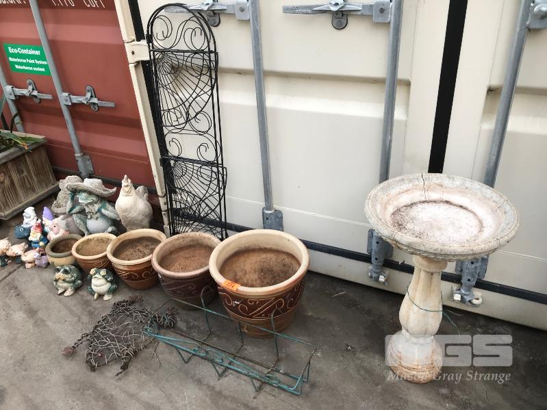 CONCRETE BIRTH BATH, SET OF 4 GRADUATED POTS, GARDEN STATUES & ORNAMENTS