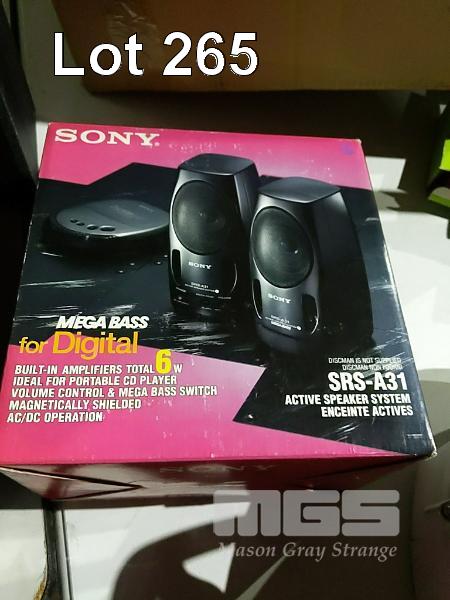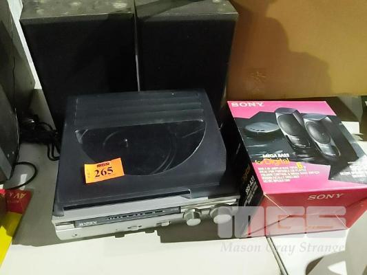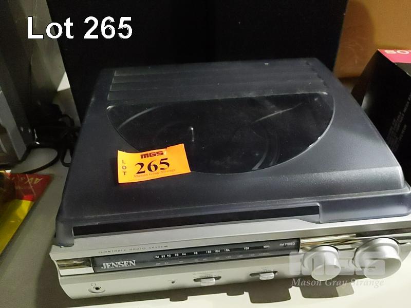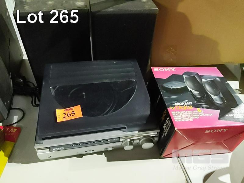 JENSEN AM/FM TURNTABLE WITH SPEAKERS AND NEW IN BOX SONY "MEGA BASD" DIGITAL SPEAKERS WITH BUILT-IN AMPLIFIER