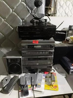 COLLECTION OF HOME STEREO COMPONENTS & ACCESSORIES, NONE COMPLETE INCLUDING TIAC STEREO SYSTEM, REALISTIC AM/FM STEREO DUBBING CASSETTE MUSIC SYSTEM, UNIVERSAL REMOTES, AV SELECTORS ETC