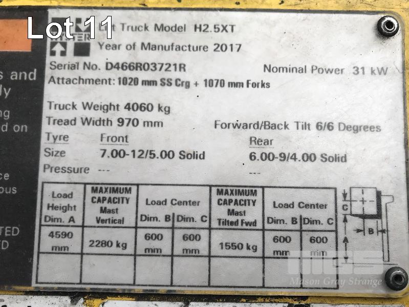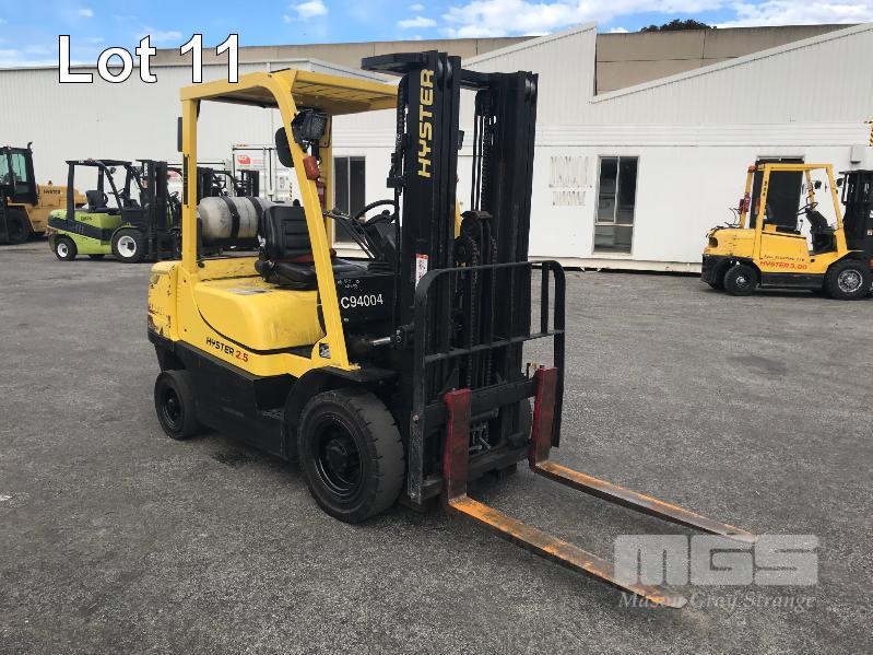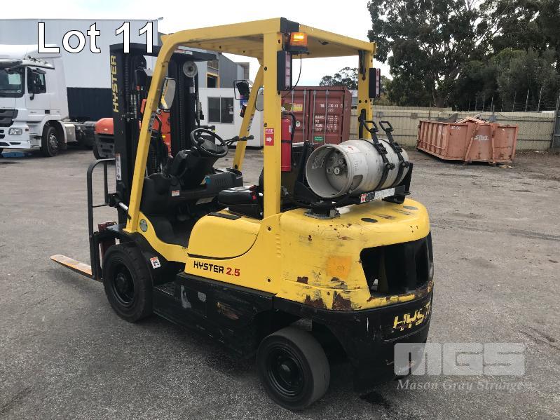 2017 FORKLIFT, HYSTER MOD: H2.5XT HOURS: 5,473 INDICATED 2,280kg CAPACITY 3 STAGE CONTAINER MAST SIDE SHIFT 4 CYLINDER LPG FIRE EXTINGUISHER SOLID TYRES KEY #33 S/N:D466R03721R