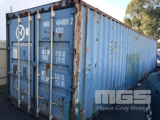 40' SHIPPING CONTAINER FITTED WITH ANNEXE ATTACHMENT POSTS & LIGHTING