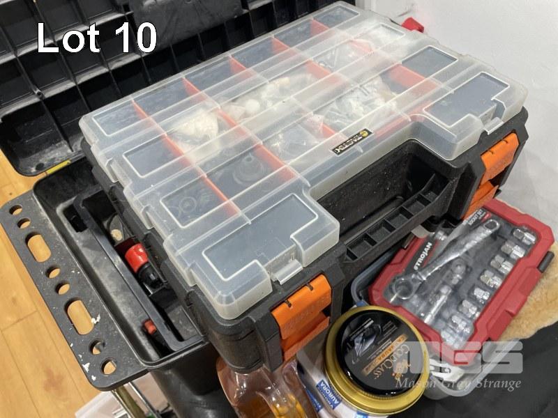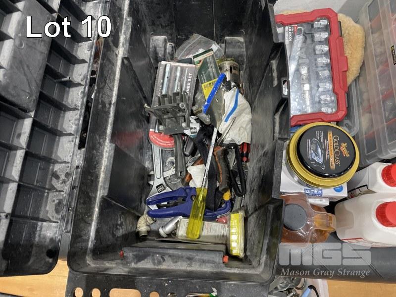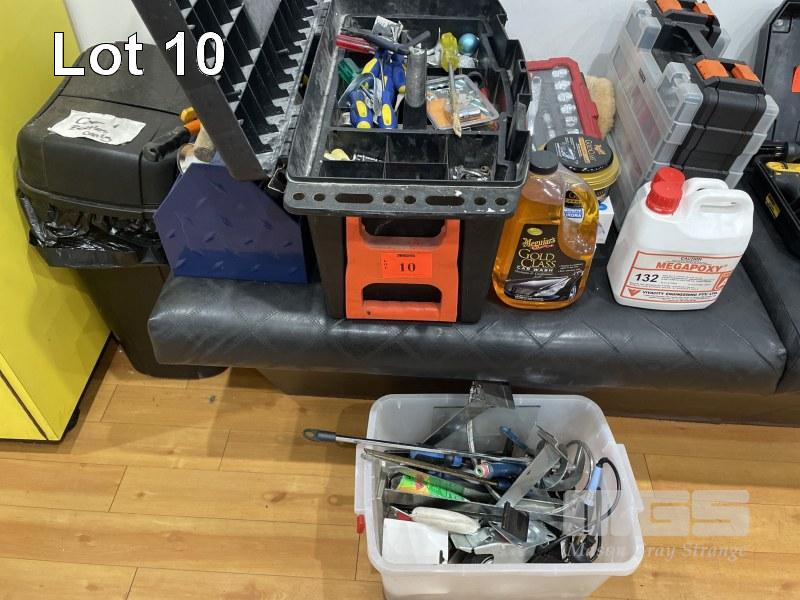 ASST TOOLS, TOOL BOXES, HARDWARE, SOCKET SET, CAR WASH, MEGA POXY, ETC.