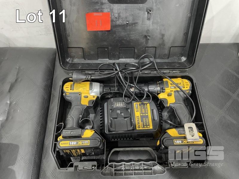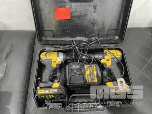 DE WALT CORDLESS DRILL & TEK GUN SET 18 VOLT LI-ION, CASE, CHARGER & 2 BATTERIES ALL CHARGED & WORKING