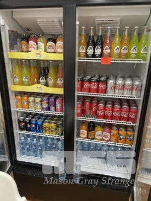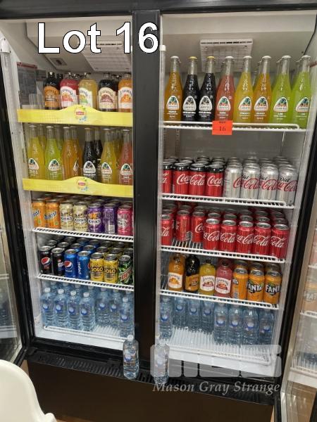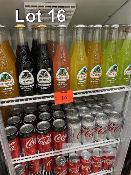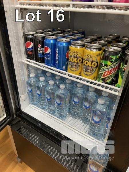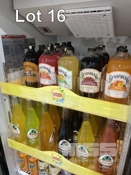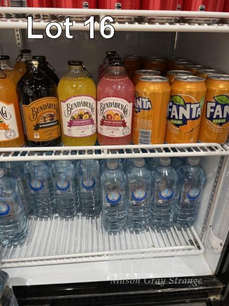 CONTENTS OF FRIDGE ONLY, INCL ALL SOFT DRINKS, WATERS, BOTTLES & CANS 250 PLUS, INCL COKE, BUNDABERG, PEPSI, KIRKS, JARRITOS & NU WATER