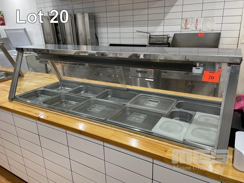 COLD PLATE DISPLAY BAIN MARIE, ROBAND MOD: FR25 1680 x 620mm, DROP IN TYPE SELF CONTAINED REFRIGERATION, 240V WITH 13 ASST GASTRONORM PANS & 6 PVC LIDS