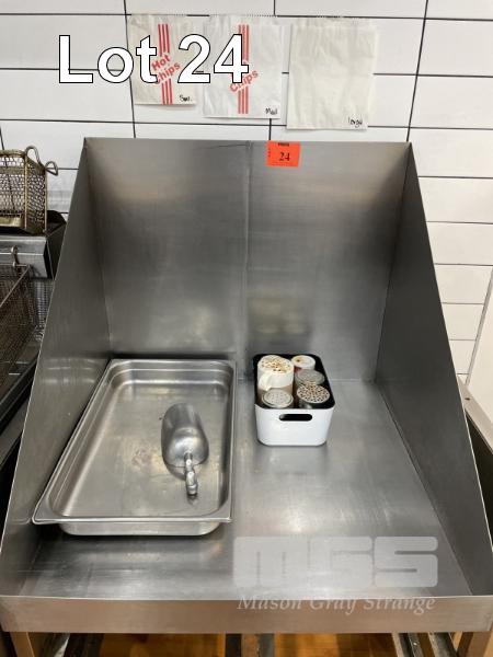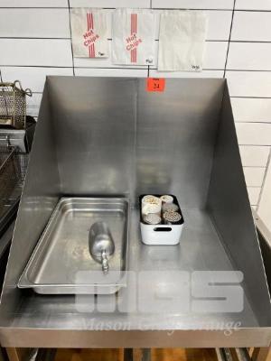 STAINLESS STEEL CHIP BIN, 700 x 690mm WITH GASTRONORM PAN, SCOOP & SALT SHAKERS