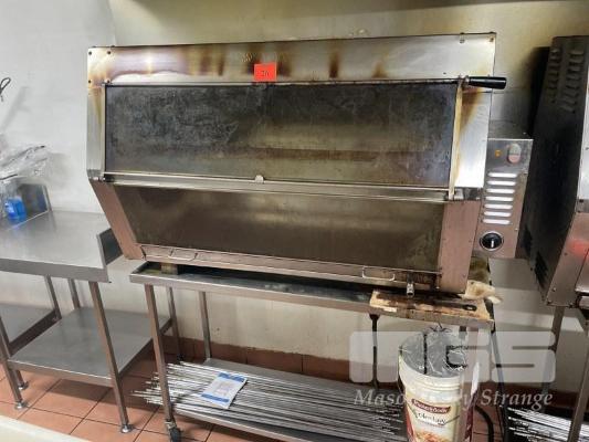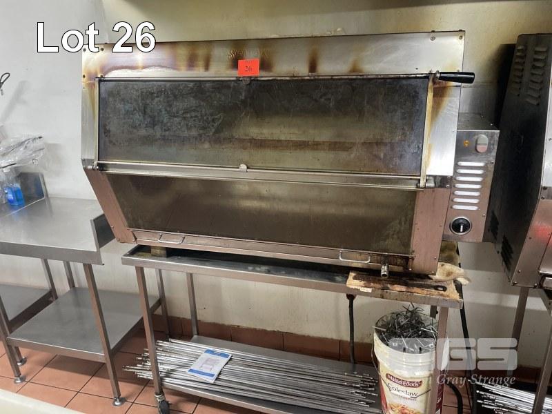 36 BIRD ROTISSERIE, SEMAC MOD: M36 415V (240V x 3 PHASE) ON STAINLESS STEEL MOBILE TROLLEY WITH CHICKEN SKEWERS