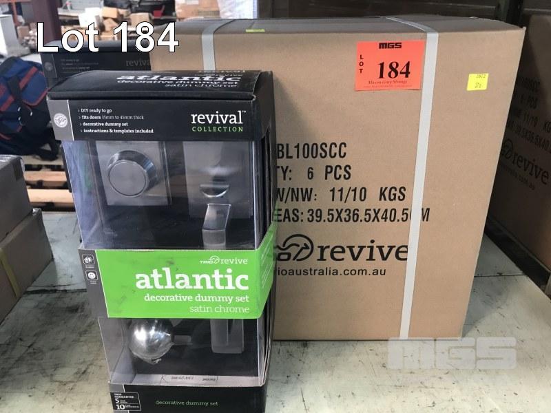 6 x DOOR HANDLE DECORATIVE DUMMY SETS, TRIO REVIVAL ATLANTIC, SATIN CHROME 1 x BOX, WBL-100SCC