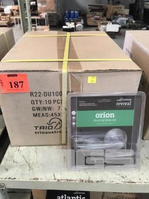 10 x DOOR HANDLE DUMMY LEVER SETS, TRIO REVIVE ORION, SATIN CHROME PEARL 1 x BOX, R22-DU100SCP