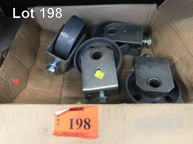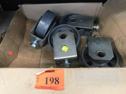 4 x STEEL CASTERS, 120mm DIAMETER, (NEW)
