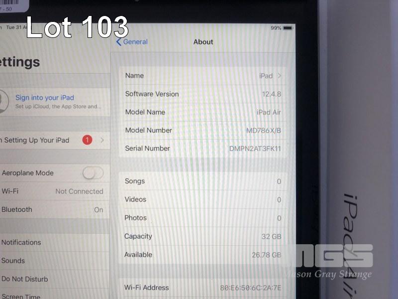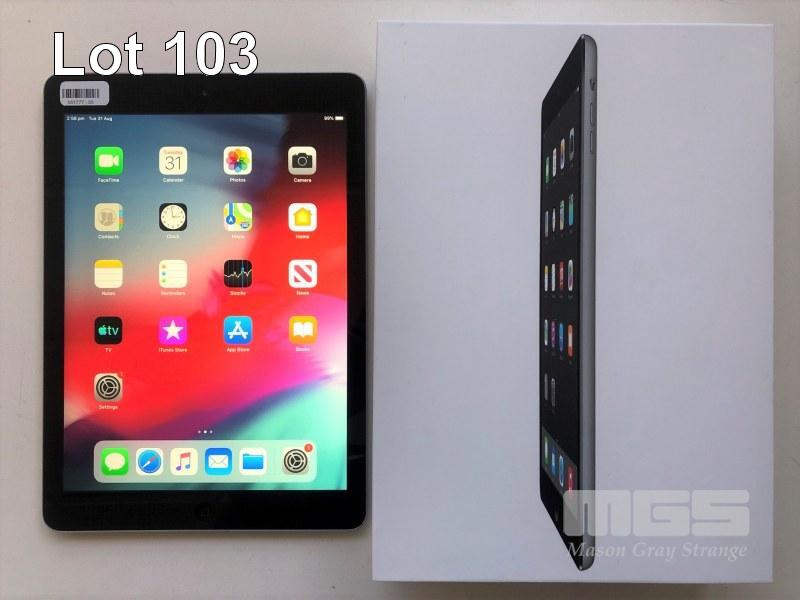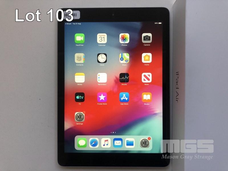 APPLE iPAD AIR, 32GB, Wi-Fi, SPACE GREY, MODEL A1474 WITH CABLE & CHARGER S/N:DMPN2AT3FK11
