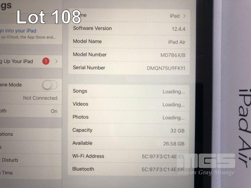 APPLE iPAD AIR, 32GB, Wi-Fi, SPACE GREY, MODEL A1474 WITH CABLE & CHARGER S/N:DMQN75U9FK11