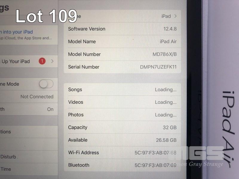 APPLE iPAD AIR, 32GB, Wi-Fi, SPACE GREY, MODEL A1474 WITH CABLE & CHARGER S/N:DMPN7UZEFK11