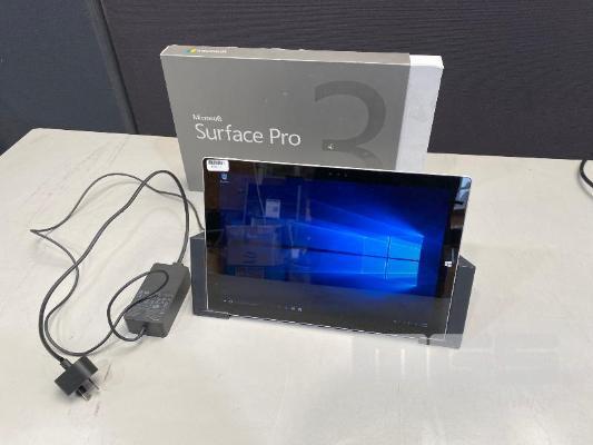 TABLET PC, MICROSOFT SURFACE PRO 3, MODEL 1631, CORE i5 4300U (4TH GEN) @ 1.9GHz, 4GB DDR3 RAM, 128GB SSD, 12" TOUCHSCREEN, Wi-Fi, WINDOWS 10 PRO INSTALLED, SURFACE DOCK (1664) WITH DOCK POWER SUPPLY (1627) S/N:003576751353