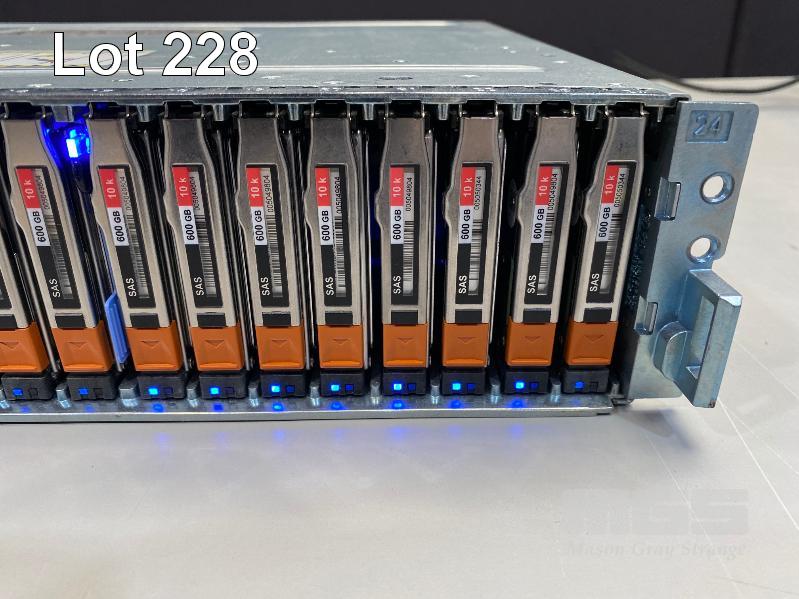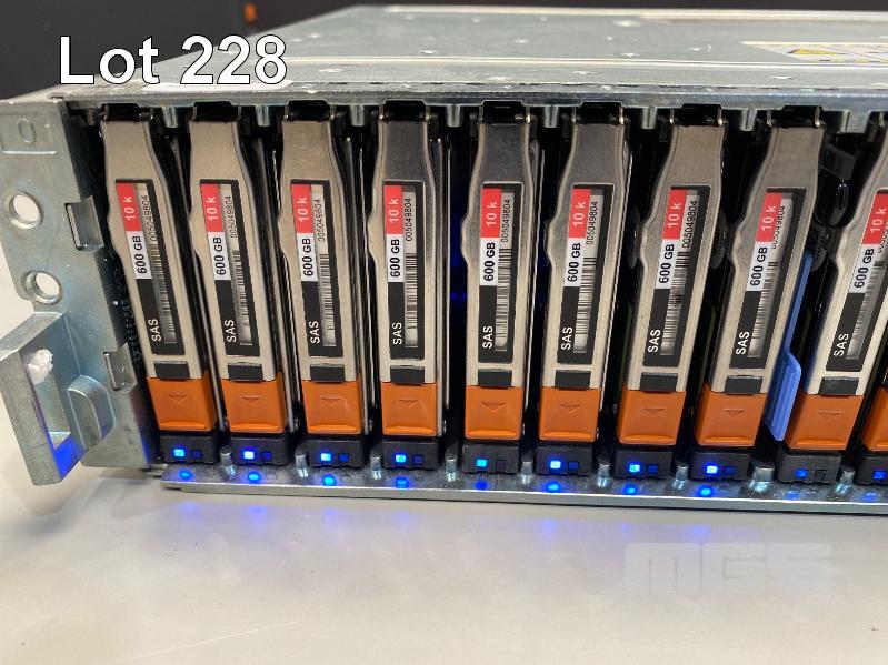 RACKMOUNT STORAGE DISK ARRAY ENCLOUSRE, EMC, MODEL SAE, 2U, WITH 25 x 600GB SAS HDD, 2 x 6GB SAS LCC CONTROLLER CARDS (303-104-000E), 2 x PSU (NO CABLES)