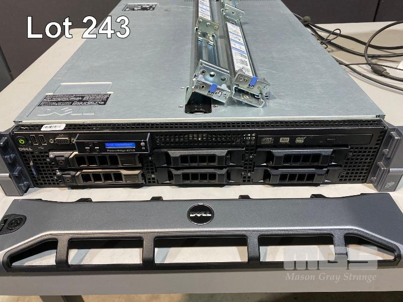 RACKMOUNT SERVER, DELL POWEREDGE R710, 2U, 2 x XEON E5530 @ 2.4GHz, 32GB ECC DDR3 RAM, 2 x 300GB SAS HDD, DVD-RW, 2 x PSU WITH RAILS (NOTE: MINOR DAMAGE TO REAR OF CASING) S/N:7RLM22S