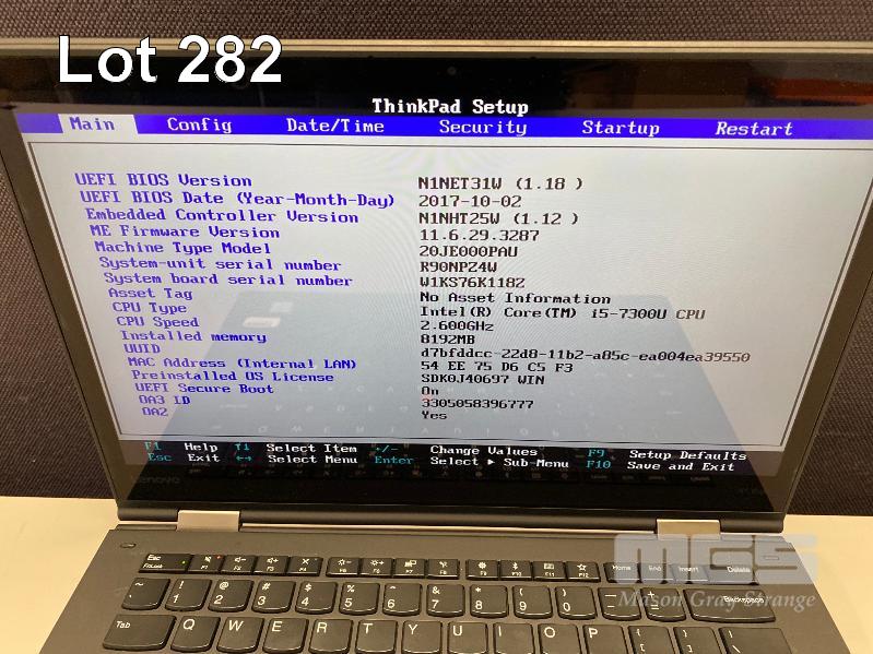 LAPTOP, LENOVO THINKPAD X1 YOGA 2ND GEN (20JE000PAU), CORE i5 7300U (7TH GEN) @ 2.6GHz, 8GB DDR4 RAM, 256GB NVMe M.2 SSD, 14" TOUCHSCREEN (1920x1080), INTEL HD VIDEO, Wi-Fi, BLUETOOTH, WINDOWS 10 PRO INSTALLED & USB-C POWER SUPPLY (NOTE: MINOR MARKS ON SCREEN) S/N:R90NPZ4W