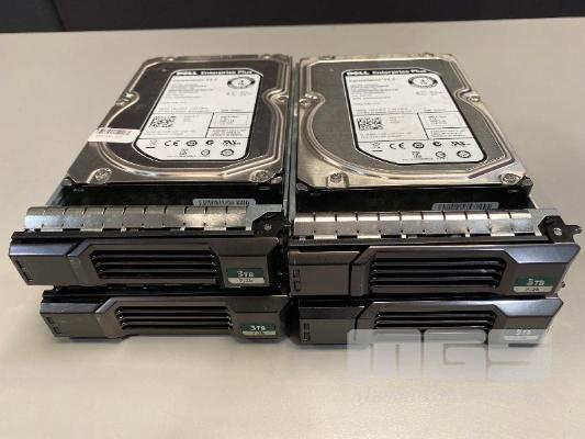 4 x DELL 3TB SAS HARD DRIVES, 3.5" WITH CADDIES
