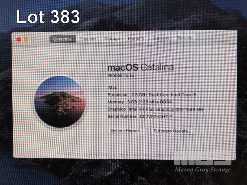 APPLE iMAC (A1418), CORE i5 7360U (7TH GEN) @ 2.3GHz, 8GB DDR4 RAM, 1TB SATA HDD, BUILT-IN 21.5" DISPLAY (1920x1080), INTEL IRIS PLUS GRAPHICS 640, Wi-Fi, MAC OS 10.15 INSTALLED (NO KEYBOARD, NO MOUSE) S/N:C02V83V4H7JY