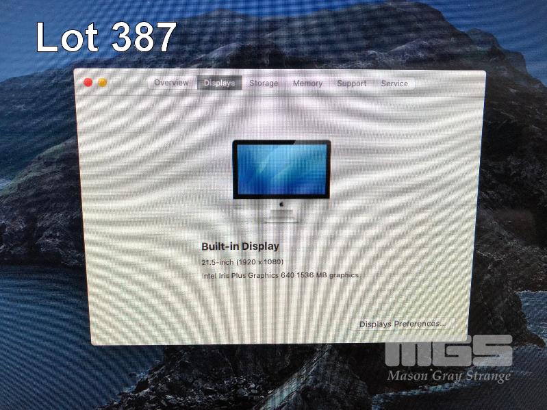 APPLE iMAC (A1418), CORE i5 7360U (7TH GEN) @ 2.3GHz, 8GB DDR4 RAM, 1TB SATA HDD, BUILT-IN 21.5" DISPLAY (1920x1080), INTEL IRIS PLUS GRAPHICS 640, Wi-Fi, MAC OS 10.15 INSTALLED (NO KEYBOARD, NO MOUSE) S/N:C02VG5TRH7JY