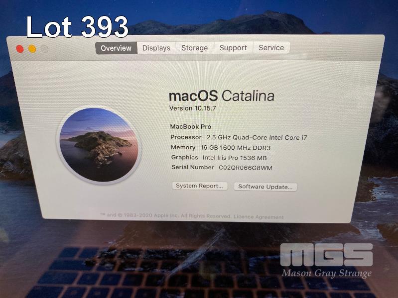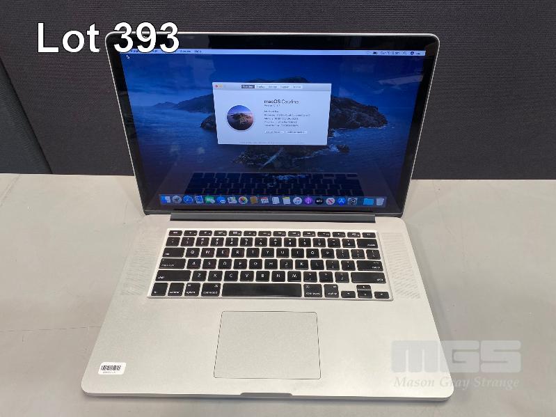 LAPTOP, APPLE MACBOOK PRO (A1398), CORE i7 4870HQ (4TH GEN) @ 2.5GHz, 16GB DDR3 RAM, 1TB SSD, 15.4" WIDESCREEN (2880x1800), INTEL IRIS PRO GRAPHICS, Wi-Fi, MAC OS 10.15 INSTALLED & POWER SUPPLY S/N:C02QR066G8WM