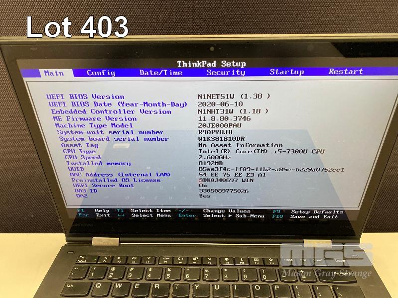 LAPTOP, LENOVO THINKPAD X1 YOGA 2ND GEN (20JE000PAU), CORE i5 7300U (7TH GEN) @ 2.6GHz, 8GB DDR4 RAM, 256GB NVMe M.2 SSD, 14" TOUCHSCREEN (1920x1080), INTEL HD VIDEO, Wi-Fi, BLUETOOTH, WINDOWS 10 PRO INSTALLED & USB-C POWER SUPPLY (NOTE: MINOR MARKS ON SCREEN) S/N:R90PY8JB
