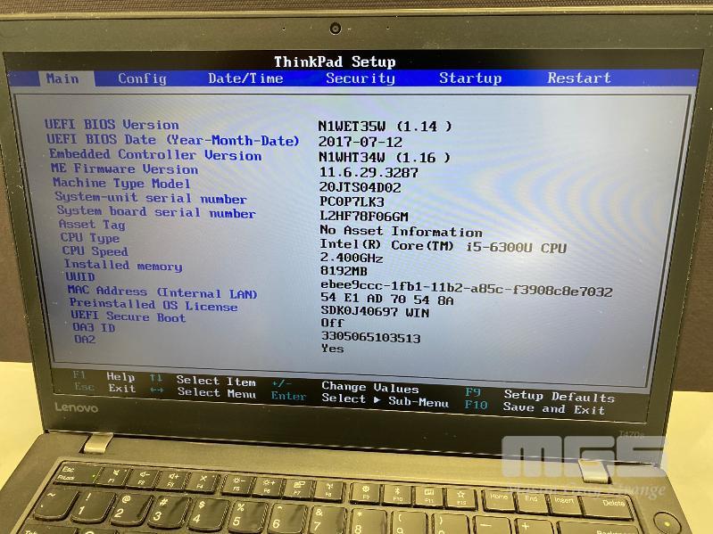 LAPTOP, LENOVO THINKPAD T470s (20JTS04D02), CORE i5 6300U (6TH GEN) @ 2.4GHz, 8GB DDR4 RAM, 500GB NVMe M.2 SSD, 14" WIDESCREEN (1920x1080), INTEL HD VIDEO, Wi-Fi, BLUETOOTH, WINDOWS 10 PRO INSTALLED & POWER SUPPLY (NOTE: MARKS ON SCREEN) S/N:PC0P7LK3