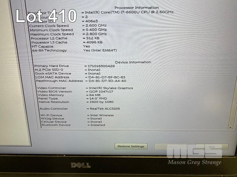 LAPTOP, DELL LATITUDE E7470, CORE i7 6600U (6TH GEN) @ 2.6GHz, 16GB DDR4 RAM, 512GB SSD, 14" WIDESCREEN (1920x1080), INTEL SKYLAKE GRAPHICS, Wi-Fi, BLUETOOTH, WINDOWS 10 HOME INSTALLED, DOCKING STATION & POWER SUPPLY S/N:536H2G2