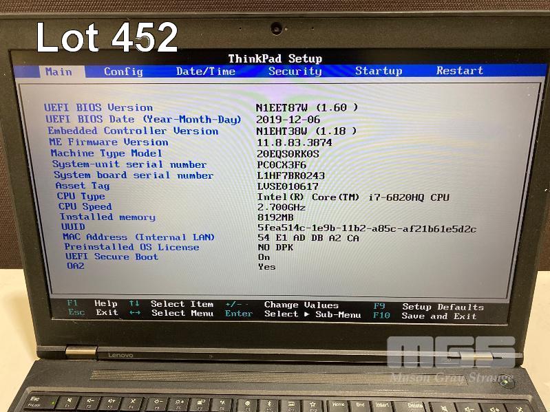 LAPTOP, LENOVO THINKPAD P50 MOBILE WORKSTATION (20EQS0RK0S), CORE i7 6820HQ (6TH GEN) @ 2.7GHz, 8GB DDR4 RAM, 512GB SSD, 15.6" WIDESCREEN (1920x1080), 4GB NVIDIA QUADRO M2000M VIDEO, Wi-Fi, BLUETOOTH, WINDOWS 10 PRO INSTALLED & POWER SUPPLY (NOTE: MARKS ON SCREEN) S/N:PC0CX3F6