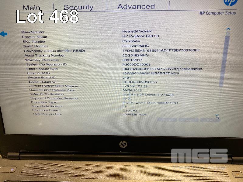 LAPTOP, HP PROBOOK 640 G1 (D9R55AV), CORE i5 4300M (4TH GEN) @ 2.6GHz, 4GB DDR3 RAM, 128GB SSD, DVD-RW, 14" WIDESCREEN (1366x768), INTEL HD VIDEO, Wi-Fi, BLUETOOTH, HP LT4112 4G MODULE, WINDOWS 10 PRO INSTALLED & POWER SUPPLY (NOTE: DAMAGE TO CASING, WHITE SPOT SCREEN BLEMISH) S/N:5CG5482MHG