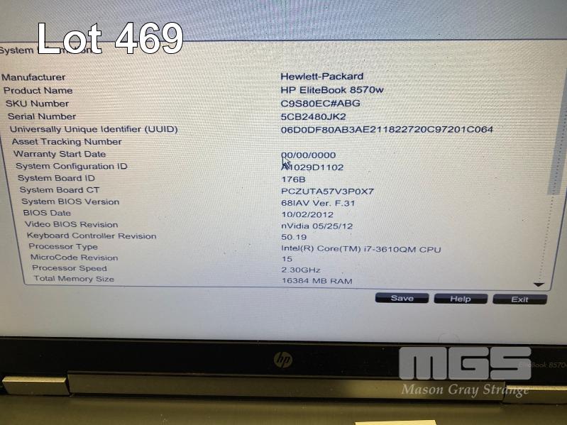 LAPTOP, HP ELITEBOOK 8570w (C9S80EC), CORE i7 3610QM (3RD GEN) @ 2.3GHz, 16GB DDR3 RAM, 500GB SSD, DVD-RW, 15.6" WIDESCREEN (1920x1080), 2GB NVIDIA QUADRO K1000M VIDEO, Wi-Fi, BLUETOOTH, WINDOWS 7 PRO INSTALLED W/ LICENSE & POWER SUPPLY S/N:5CB2480JK2