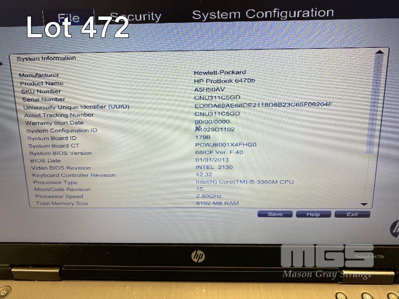 LAPTOP, HP PROBOOK 6470b (A5H50AV), CORE i5 3360M (3RD GEN) @ 2.8GHz, 8GB DDR3 RAM, 128GB SSD, DVD-RW, 14" WIDESCREEN (1366x768), INTEL HD VIDEO, Wi-Fi, BLUETOOTH, WINDOWS 7 PRO INSTALLED W/ LICENSE & POWER SUPPLY (NOTE: BATTERY NOT CHARGING, DAMAGE TO CASING) S/N:CNU311C5GD