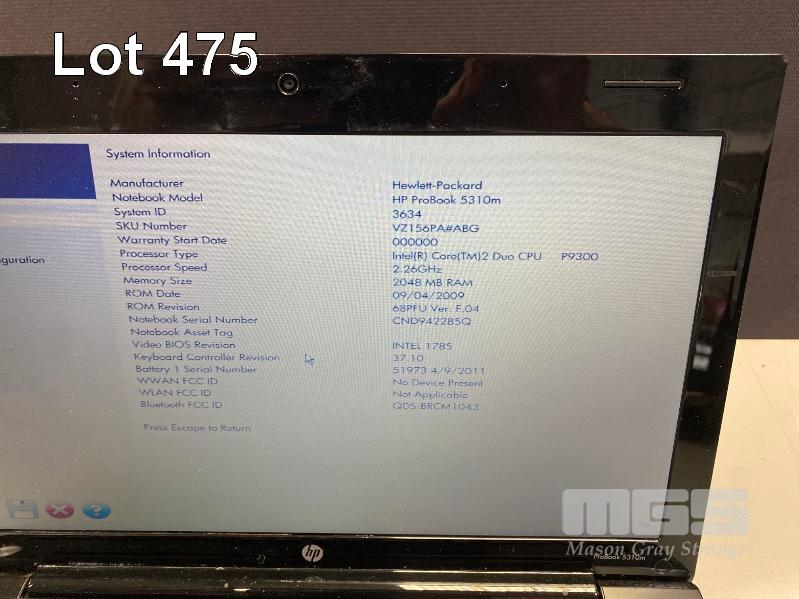LAPTOP, HP PROBOOK 5310m (VZ156PA), CORE 2 DUO P9300 @ 2.26GHz, 2GB RAM, 320GB SATA HDD, 13.3" WIDESCREEN, WINDOWS 7 PRO INSTALLED W/ LICENSE & POWER SUPPLY S/N:CND942285Q