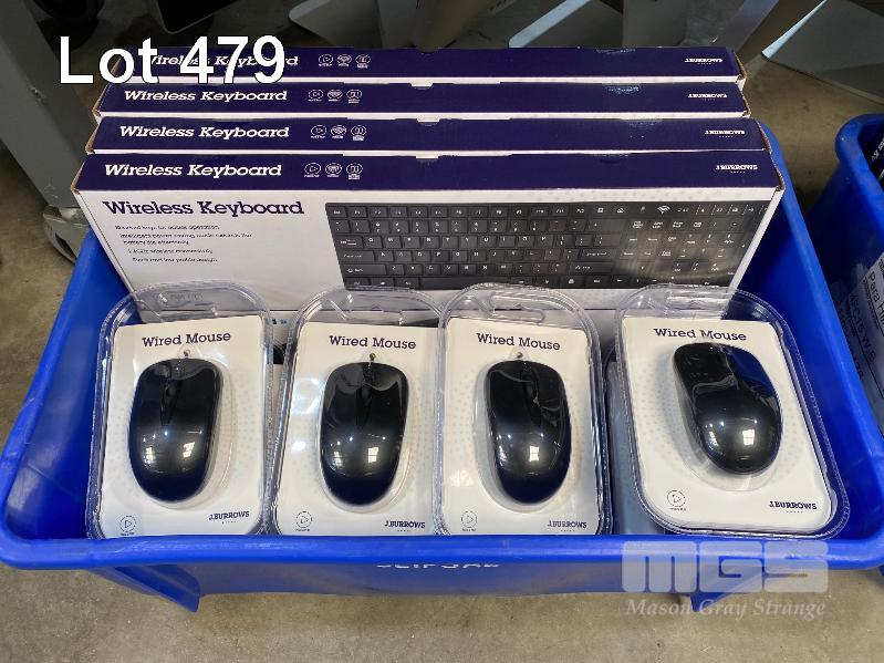 8 x J BURROWS WIRELESS KEYBOARDS (NEW IN BOX), 8 x J BURROWS WIRED MICE (NEW IN BOX)