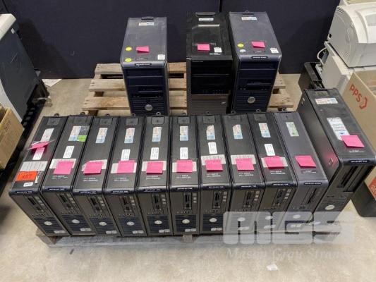 14 x ASST DELL COMPUTERS INC. 9 x DELL OPTIPLEX 755, CORE 2 QUAD Q9400 @ 2.66GHz, 4GB RAM, 160GB HDD (1 x NO HDD) 1 x DELL OPTIPLEX GX520, P4 3GHz, 1GB RAM, 40GB HDD 1 x DELL OPTIPLEX 745, CORE 2 DUO 6600 @ 2.4GHz, 2GB RAM, 160GB HDD 2 x DELL OPTIPLEX GX620, PENTIUM D 3.2GHz, 2GB RAM, 80GB HDD 1 x DELL OPTIPLEX 980, CORE i5 670 @ 3.47GHz, 4GB RAM, 160GB HDD (NO CABLES) S/N:GR1PY1S, 6R1PY1S, 9F1PY1S, 5R1PY1S, CR1PY1S, BR1PY1S, 6F1PY1S, JQ1PY1S, FR1PY1S, H7Q9H1S, 6THXR1S, BDGQM1S, 899R62S, FJGQM1S
